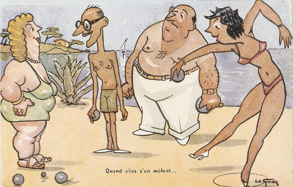 \"Les petanquerurs\" Humorous antique French postcard