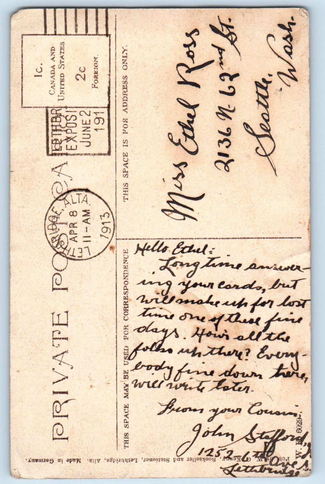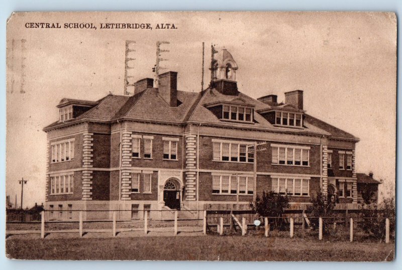 Lethbridge Alberta Canada Postcard Central School 1913 Posted Antique