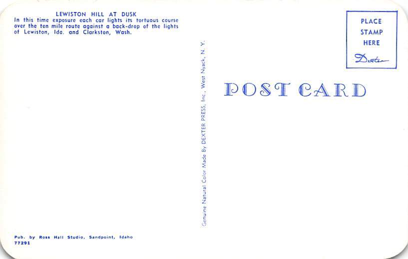 Lewiston Hill Clarkston, Washington, USA Postcard - Unused