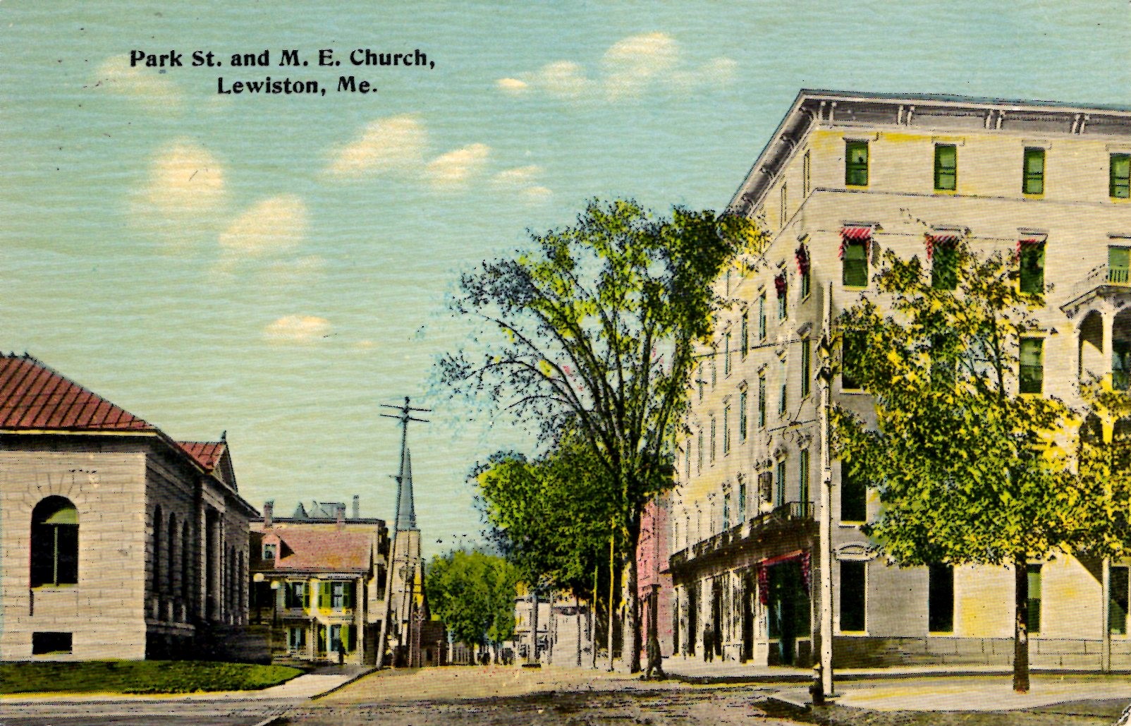 Lewiston, Maine - Looking down Park Street at the M.E. Church - c1908