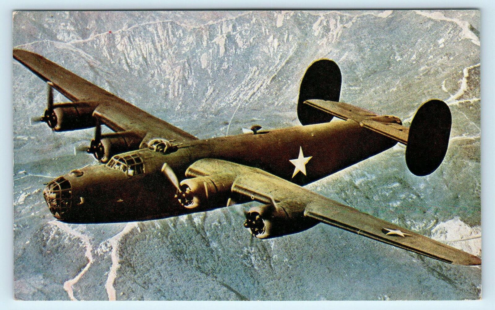 "LIBERATOR BOMBER" Military Aircraft 9-Man Crew c1940s Postcard