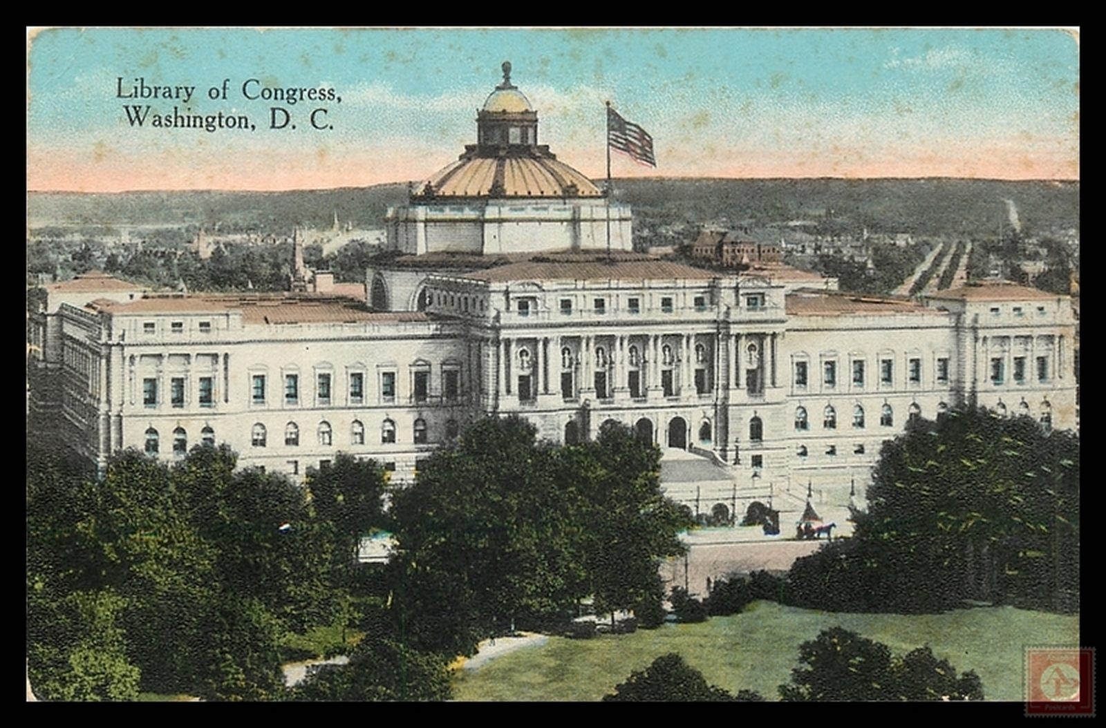 Some scans of postcards result in colored streaks which are a result of the error in scanning and not a fault of the postcard.