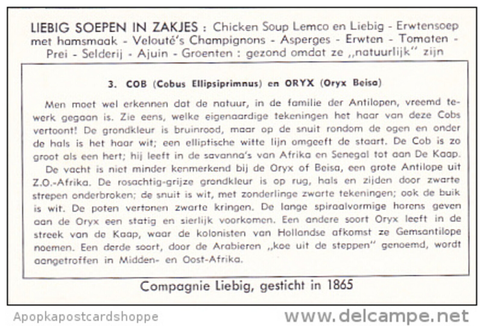 Liebig S1559 Antelopes No 3 Cob en Oryx