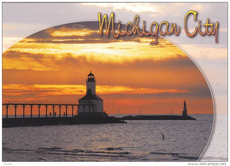 Lighthouse , Michigan City , Indiana , 70-80s :: Postcard , 4by6 " , Chrome , EX