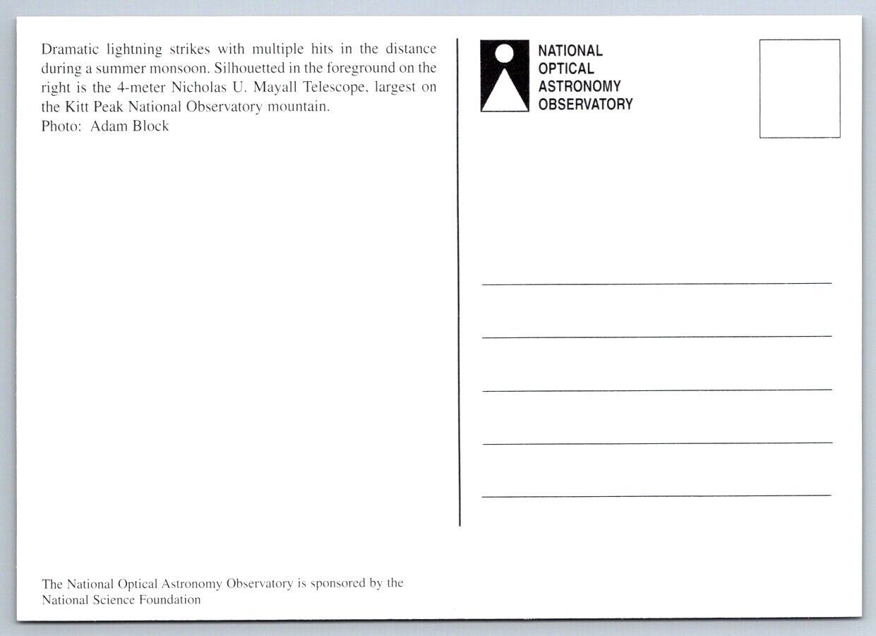 Lightning At Kitt Peak Observatories, Arizona, Chrome Postcard