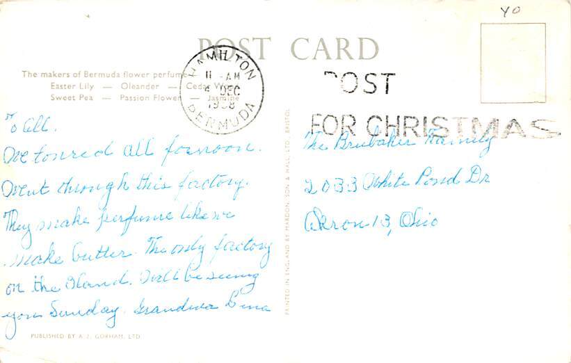 Lili Perfume Factory, Easter Lily Gardens Bermuda Postcard