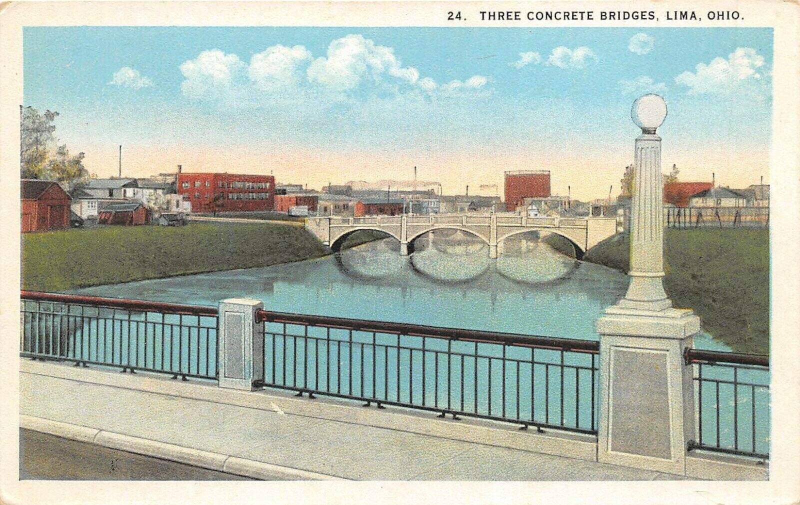 Lima Ohio 1930-40s Postcard Three Concrete Bridges