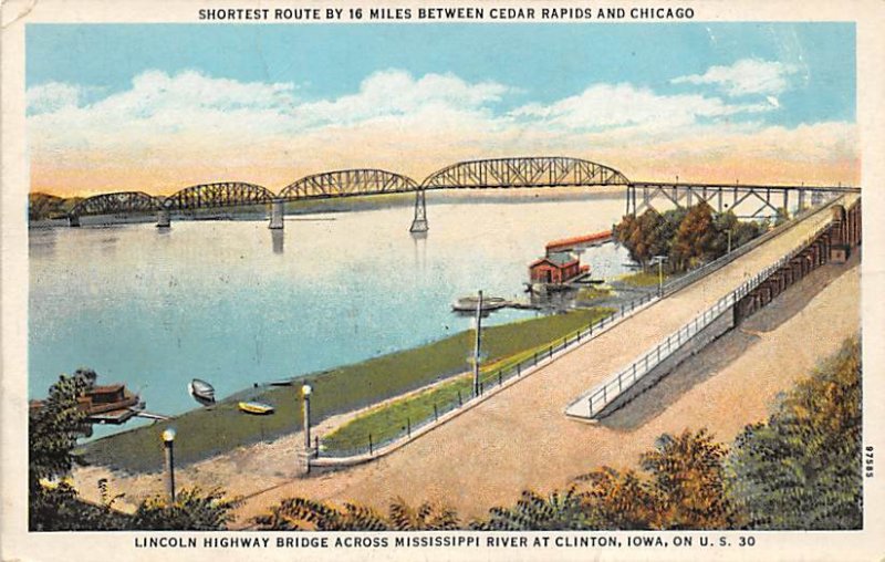 Lincoln Highway Bridge Clinton, Iowa Postcard - Unused