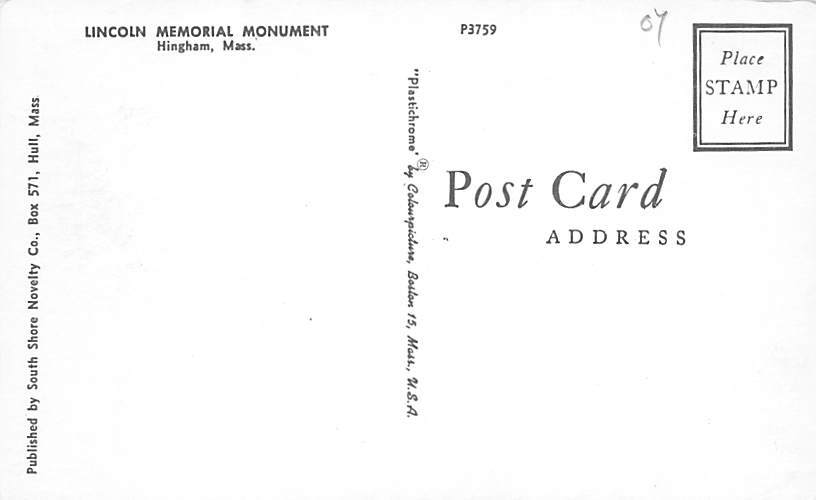Lincoln Memorial monument Hingham, Massachusetts, USA Postcard View Images,