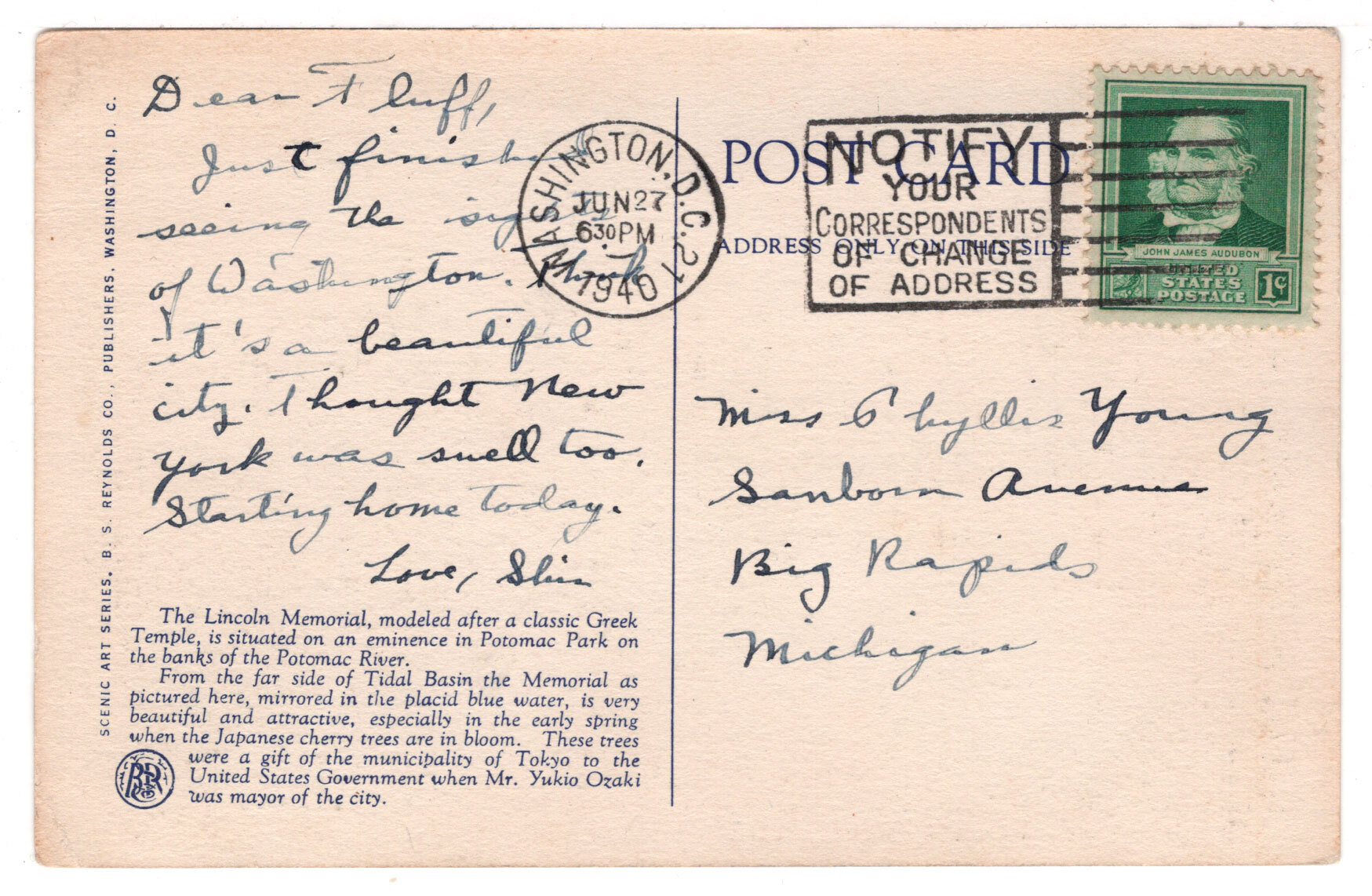Postcards are shown from Actual Scan - Post Marked June 27, 1940 in Very Good Condition.