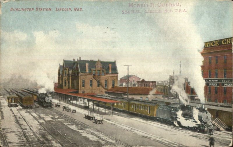 Lincoln NE Burlington RR Train Station Depot c1910 Postcard