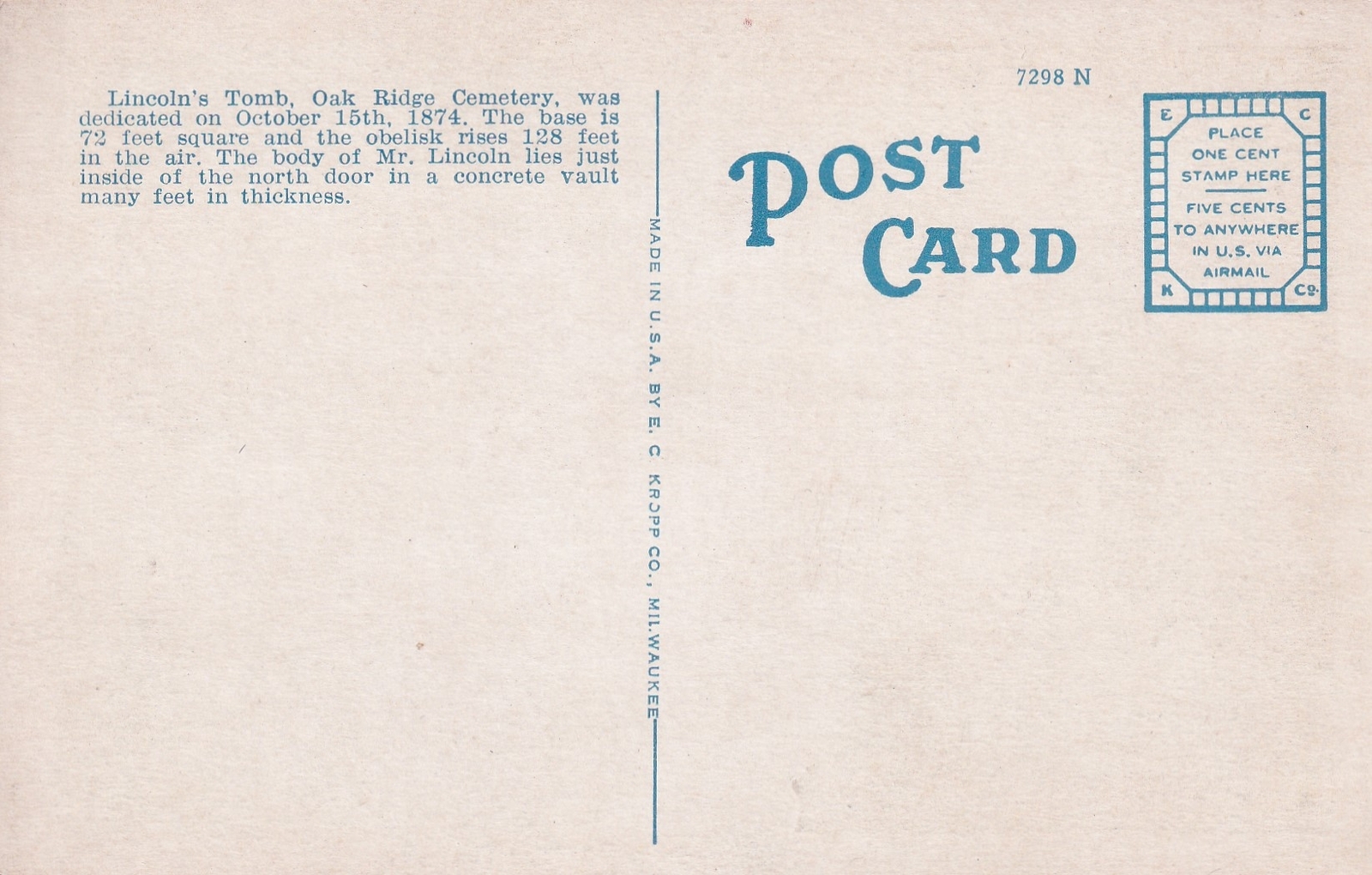 Lincoln Tomb Springfield Illinois IL Postcard A27