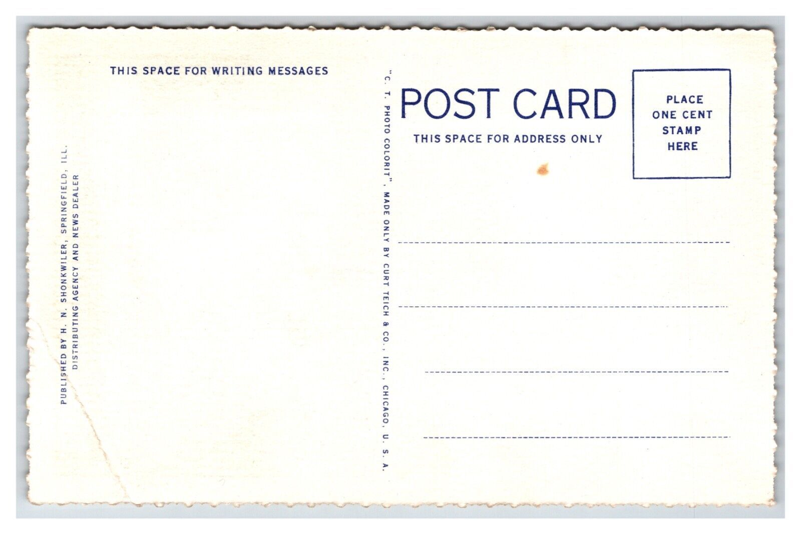 Condition: Normal wear associated with an old postcard it might have creases, a corner bump, ink on the front