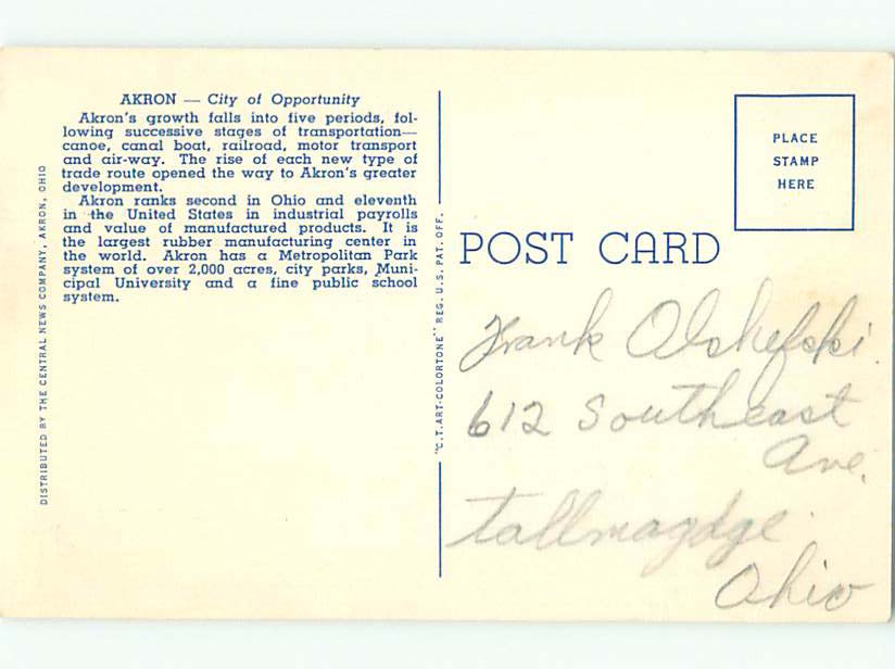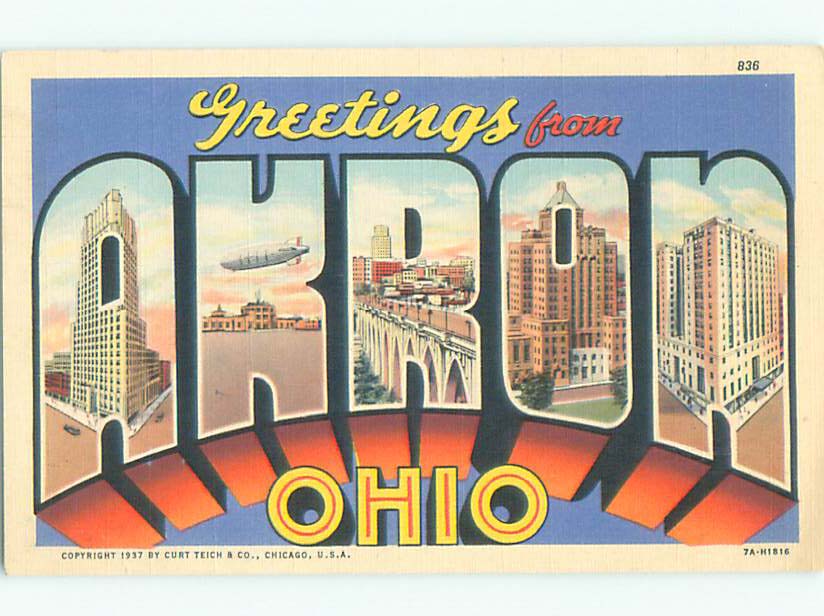 Linen BIG LARGE LETTERS Akron Ohio OH Q2804
