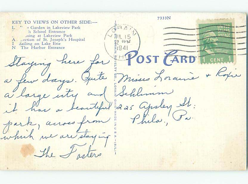 Linen BIG LARGE LETTERS Lorain Ohio OH Q2843