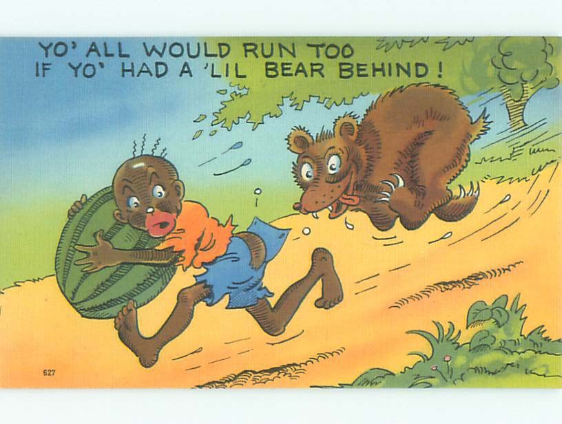 Linen Black Americana GRIZZLY BEAR CHASING AC0555