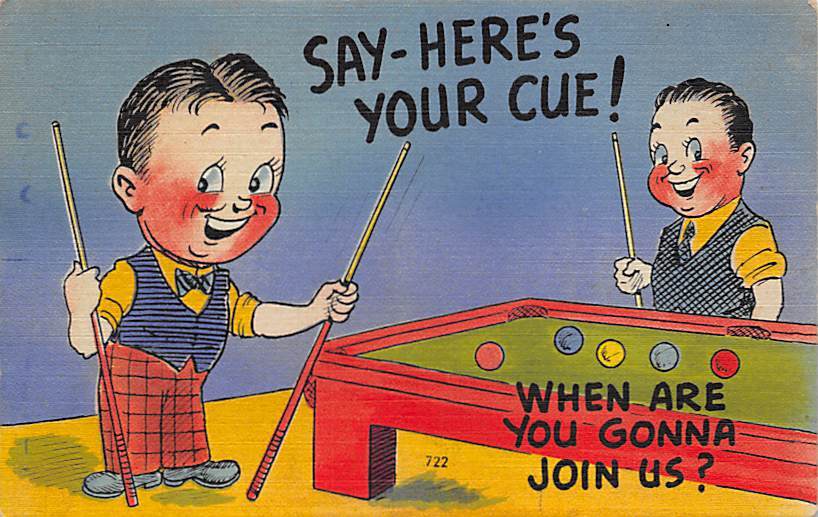Linen Comic Billiards Postcard Carte Postale Postal Date: Unused Grade: 3 Size: Regular Size Postcard - approximately 3 1/2 inch x 5 1/2 inch (9 CM x 14 CM) Grading Scale: Grade 1 = Perfect corners Grade 2 = ... Read More