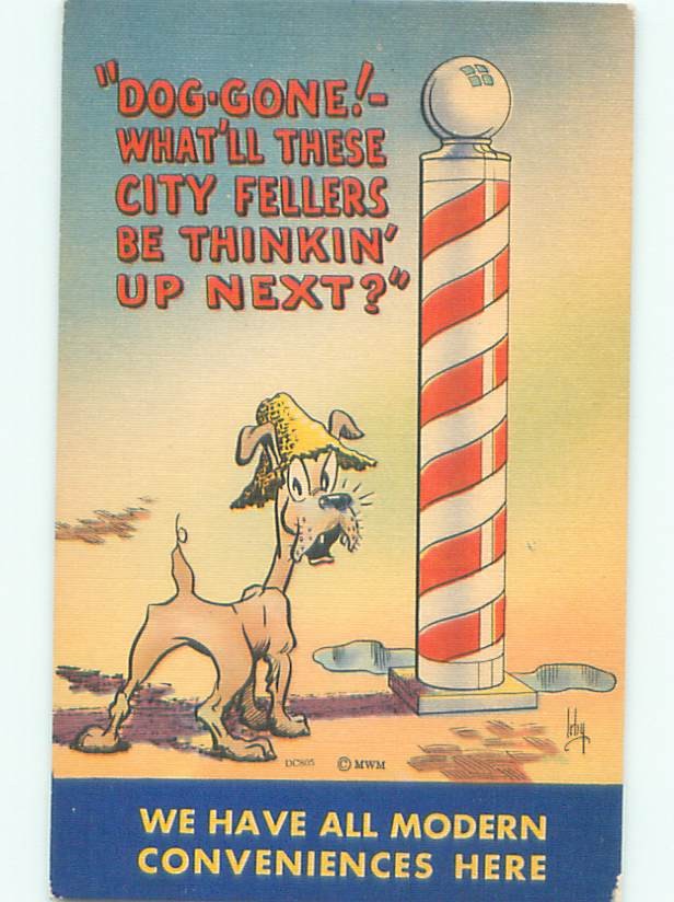 Linen Comic DOG AT A BARBER POLE AC0160
