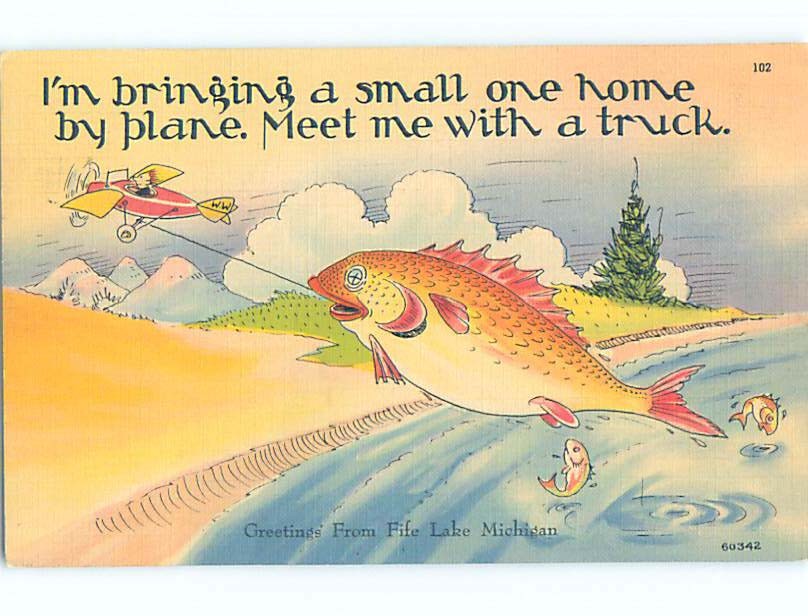 Linen comic exaggeration HUGE FISH CAUGHT USING AIRPLANE FOR FISHING HL3477