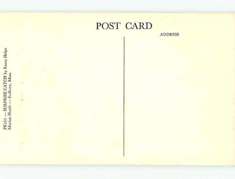 Linen-Like humanized signed BUNNY RABBIT CATCHES BOOT WHILE FISHING r5305-23