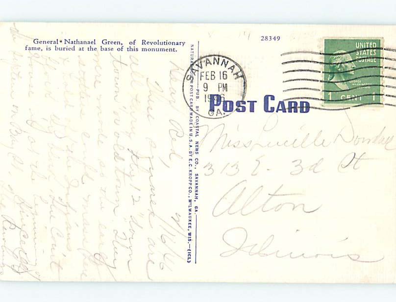 Linen MONUMENT SCENE Savannah Georgia GA AE7589