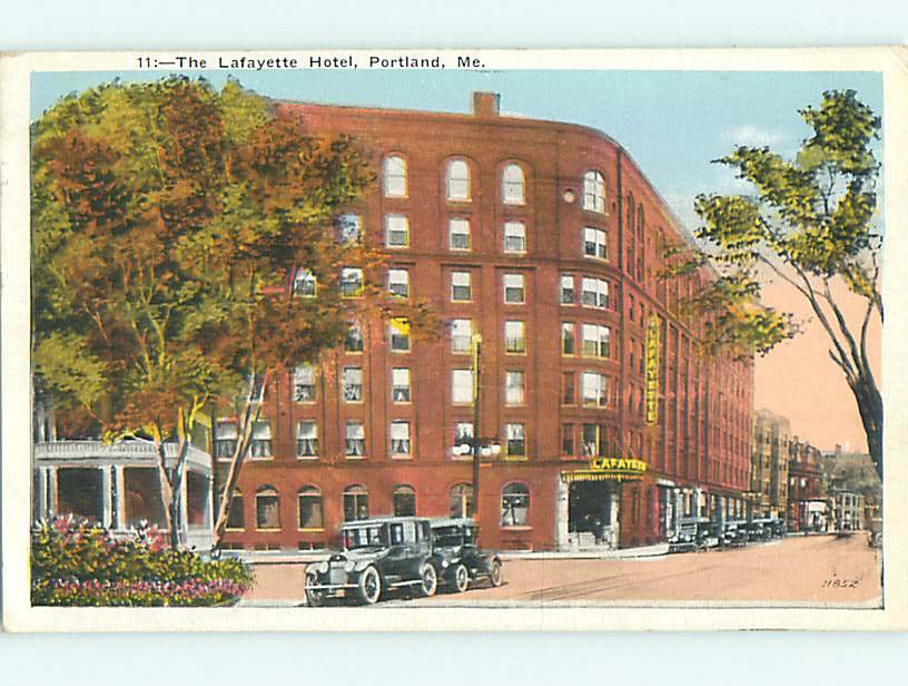 Linen OLD CARS & LAFAYETTE HOTEL Portland Maine ME t0457