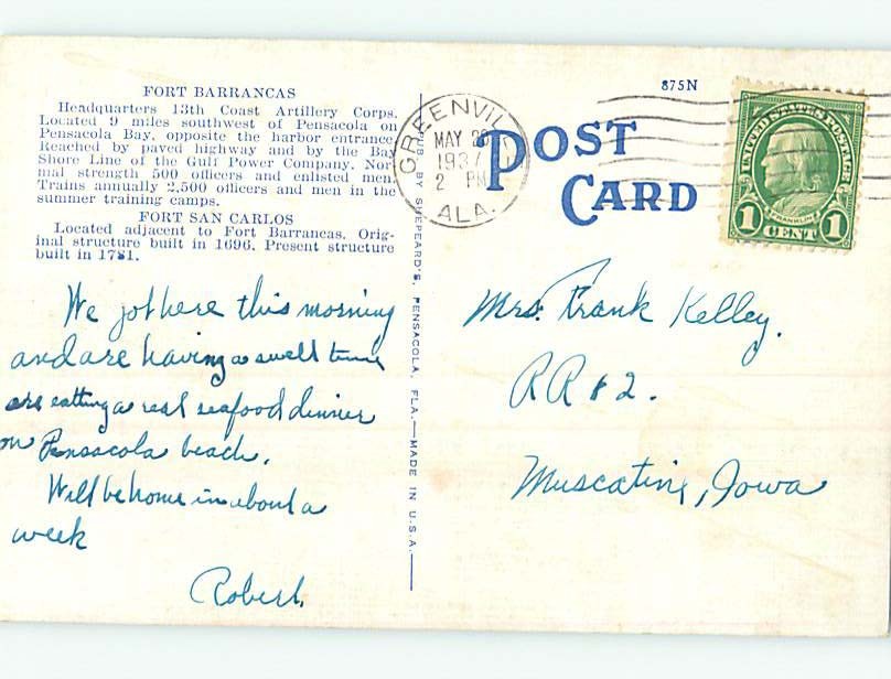 Linen POSTCARD FROM Pensacola Florida FL HM9812