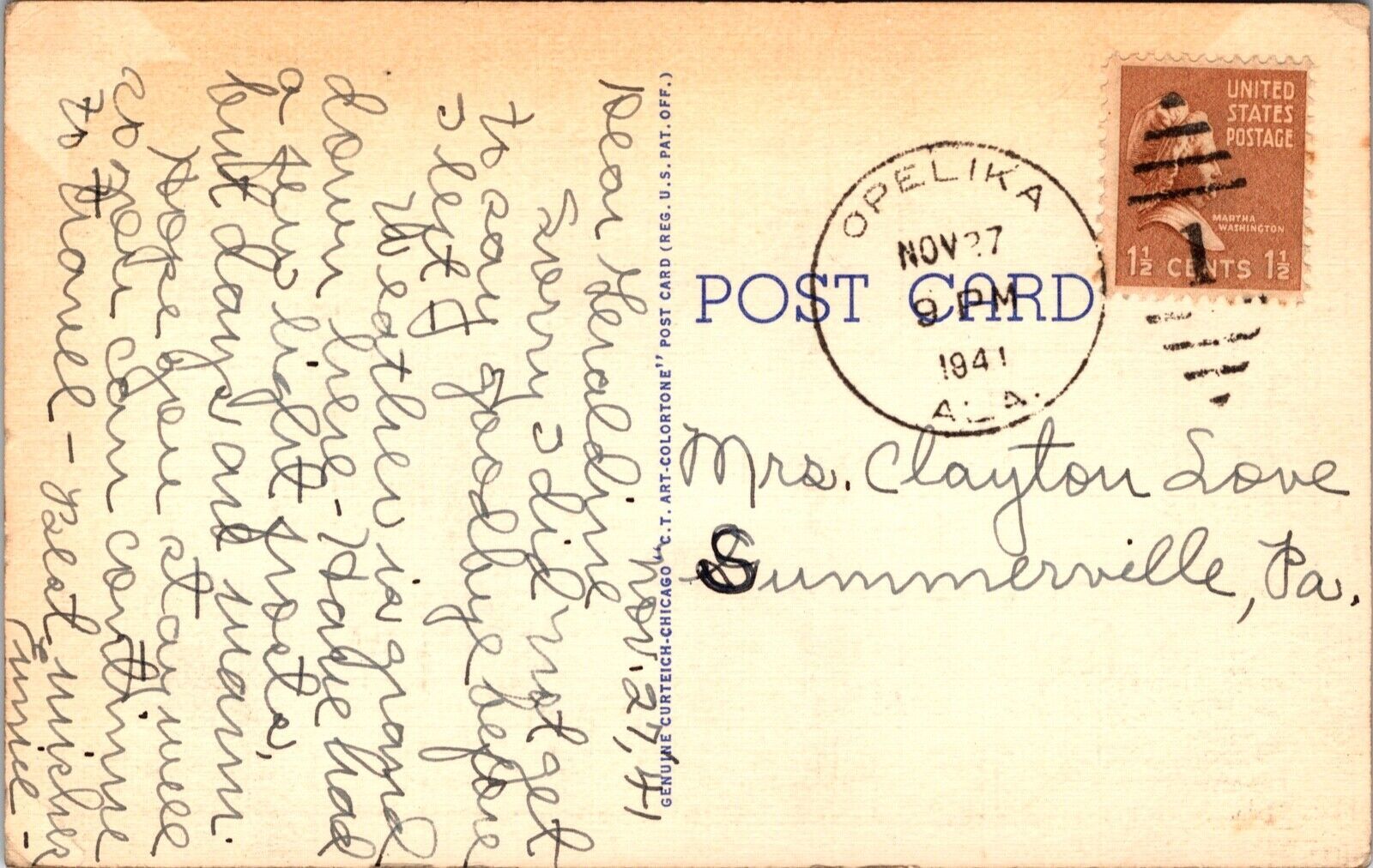 Linen Postcard Large Letter Greetings from Alabama