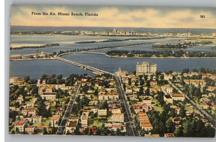 Linen Postcard-Miami Beach,Florida From the Air..FL