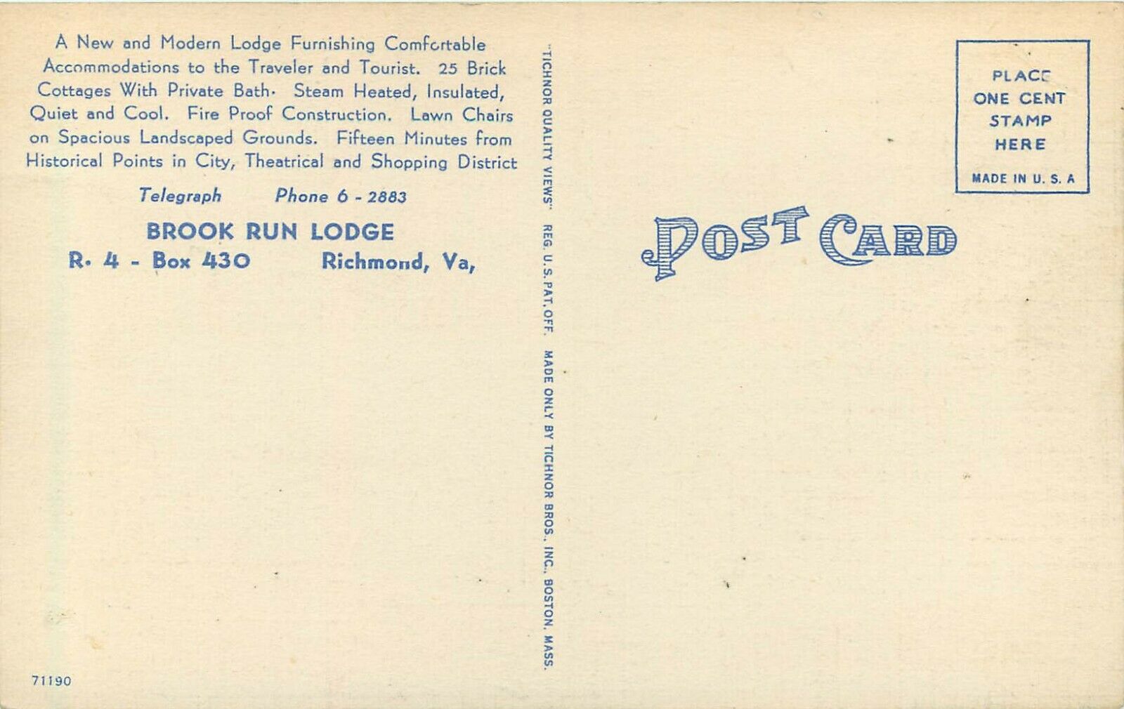 Linen Postcard Multi-View Brook Run Lodge Motel US 1 Richmond VA unposted Nice