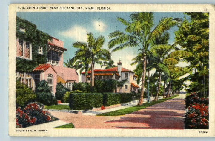 Linen Postcard-NE 55th Street-Miami,Florida/FL Homes