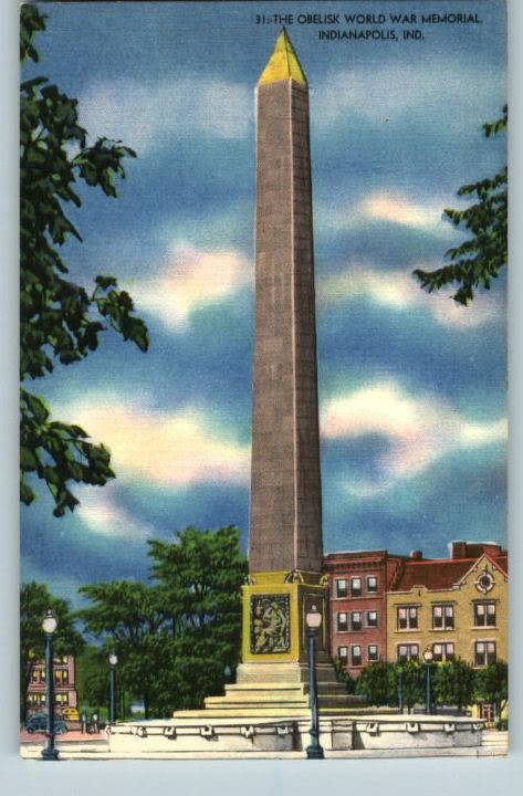 Linen Postcard-Obelisk World War Memorial-Indianapolis