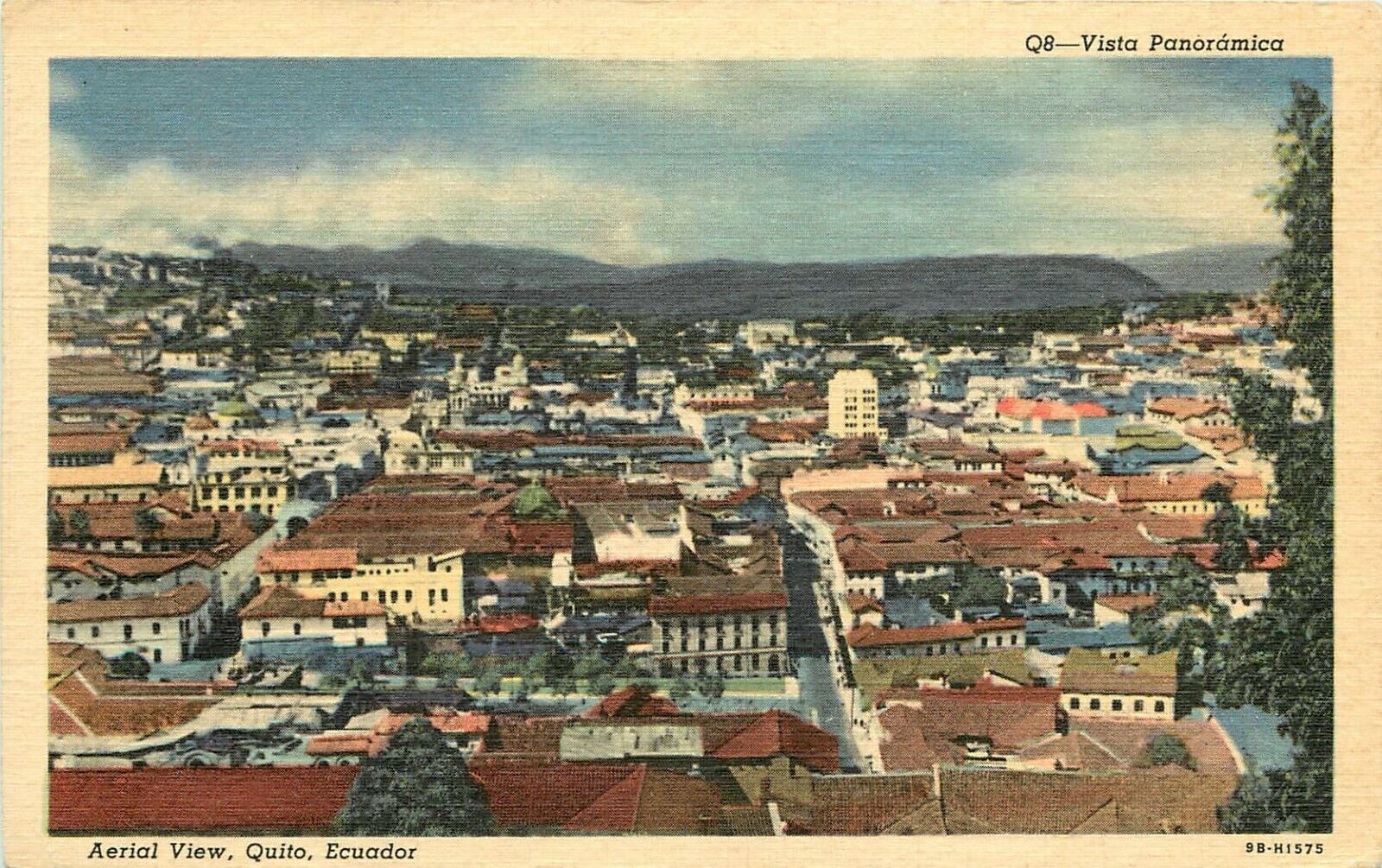 Linen Postcard Panorama Air View Quito Ecuador Central America Unposted