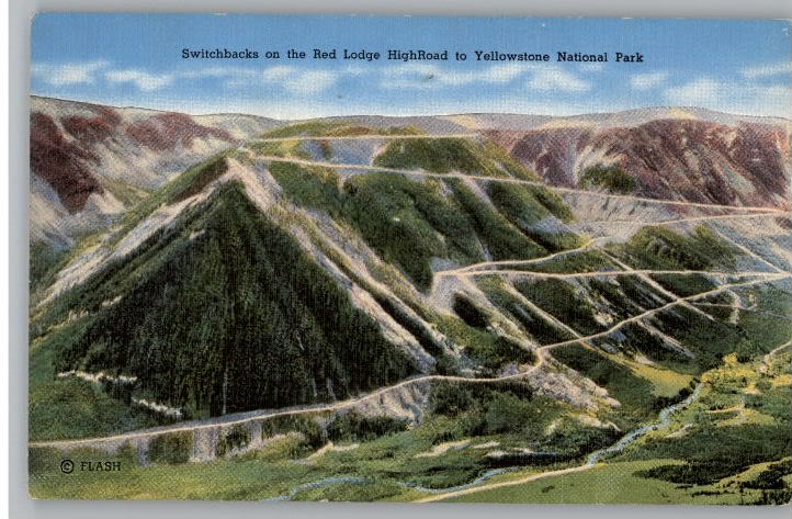 Linen Postcard-Red Lodge High Road-Yellowstone Park