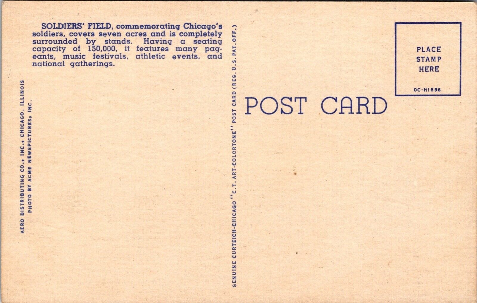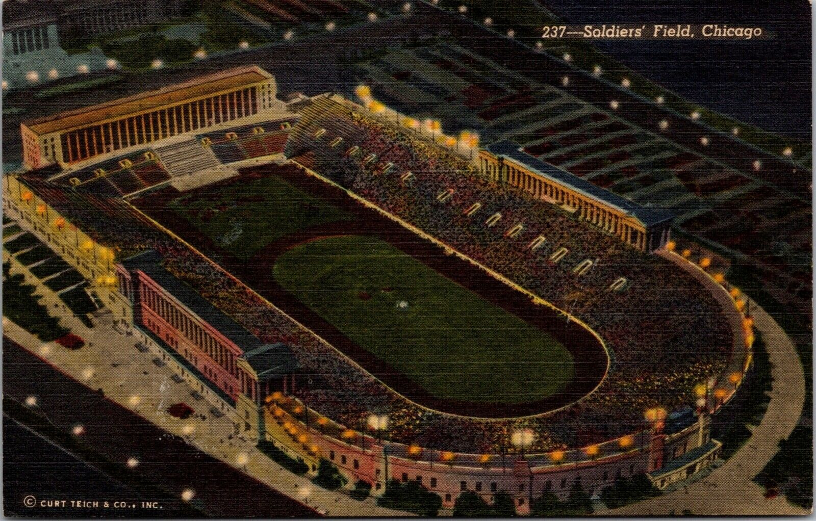 Linen Postcard Soldiers' Field in Chicago, Illinois