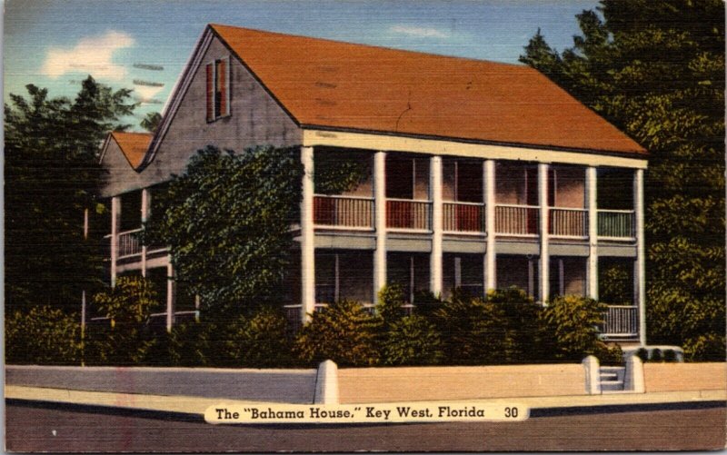 Linen Postcard The Bahama House in Key West, Florida