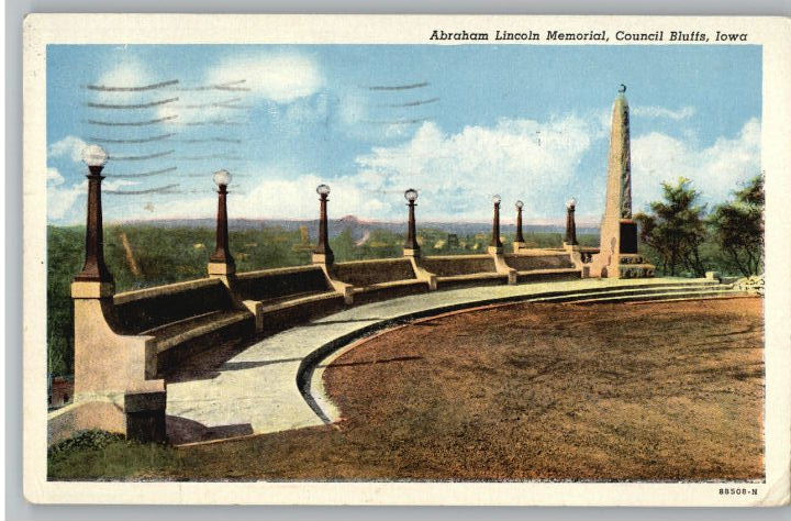 Linen Postcard~Abe Lincoln Memorial~Council Bluffs,Iowa