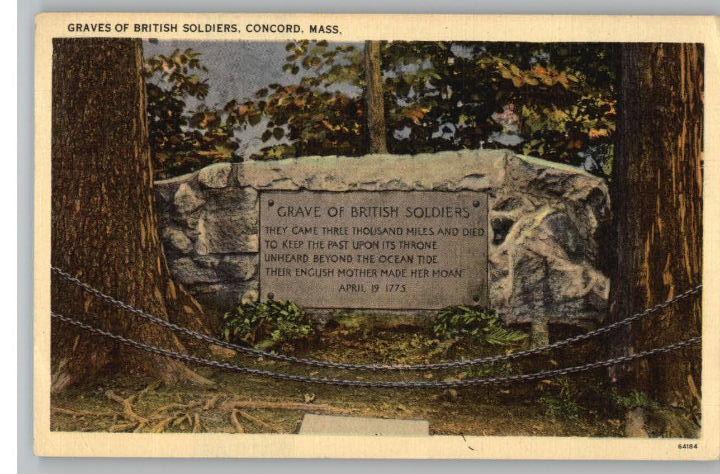 Linen Postcard~British Soldiers Grave~Concord,MA