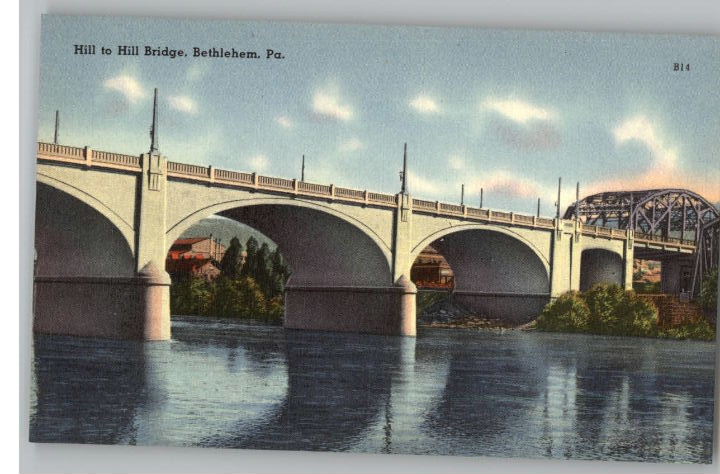 Linen Postcard~Hill Bridge~Bethlehem,Pennsylvania/PA
