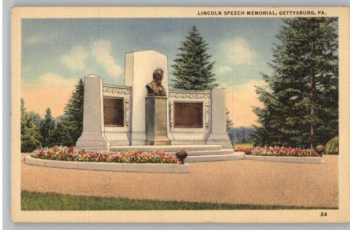 Linen Postcard~Lincoln Speech Memorial-Gettysburg,PA