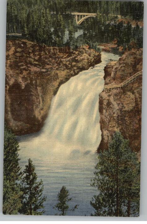 Linen Postcard..Upper Falls..Yellowstone National Park