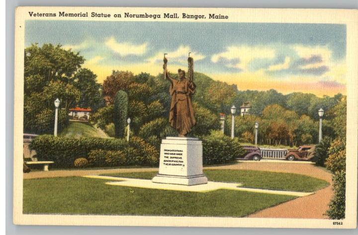 Linen Postcard~Veterans Memorial..Mall~Bangor,Maine/ME