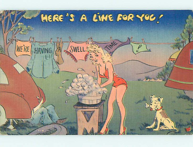Linen risque BATHING SUIT GIRL WASHES HER CLOTHES r2380
