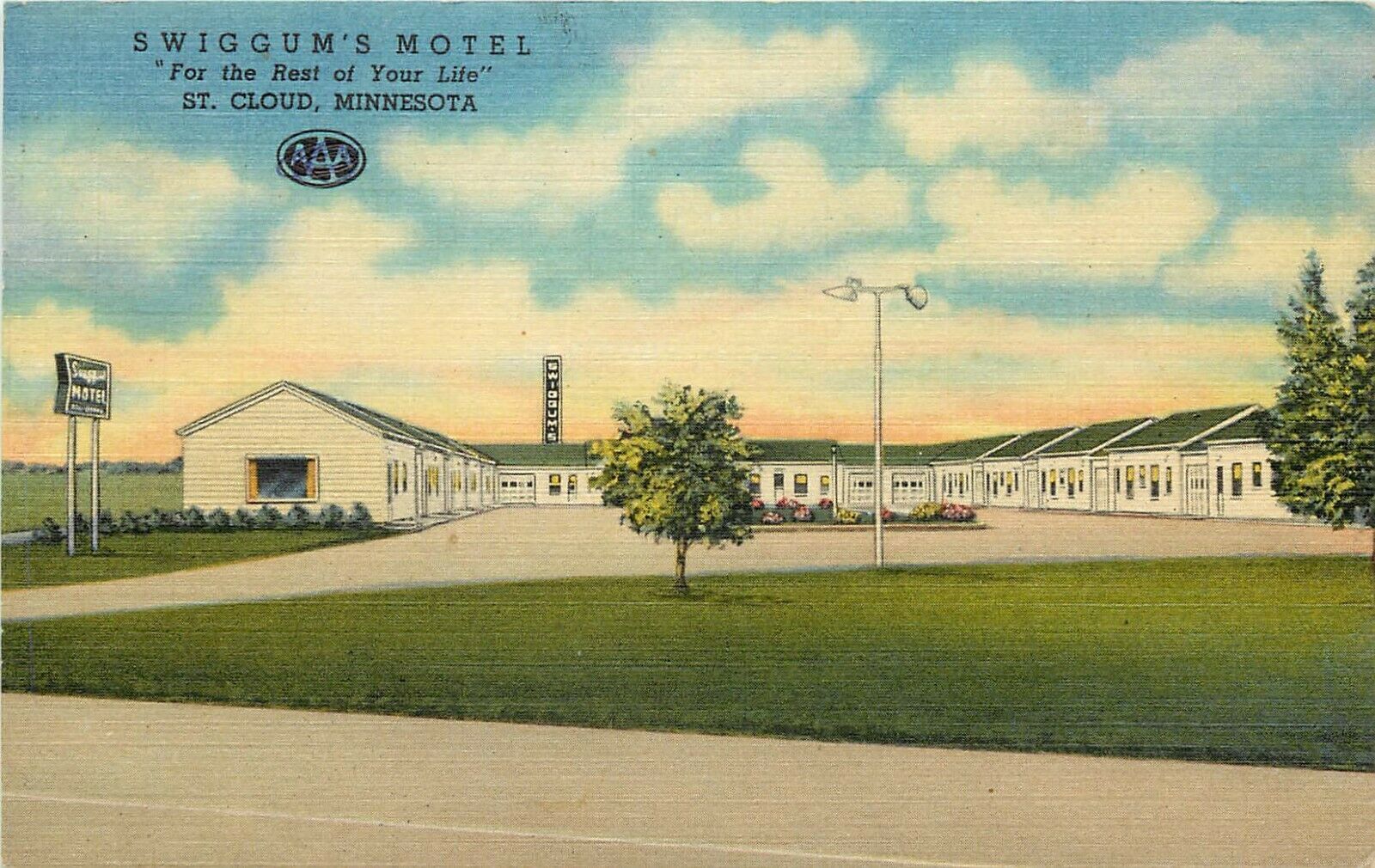 LInen Roadside Postcard; Swiggum's Motel, St. Cloud MN Curt Teich