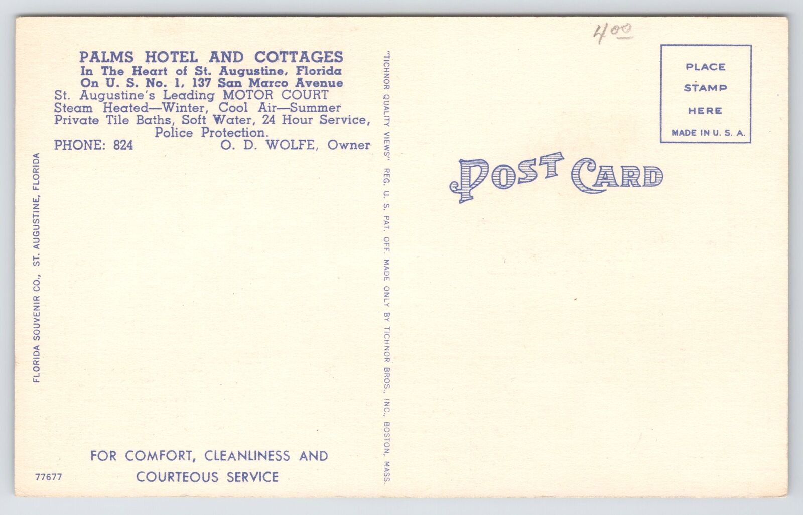 Linen~3 Views Palms Hotel & Cottages St Augustine Florida~c1910 Postcard