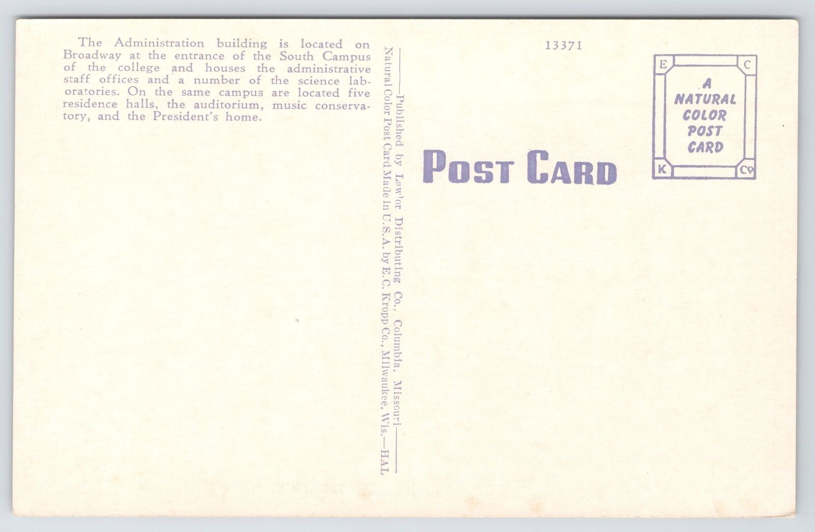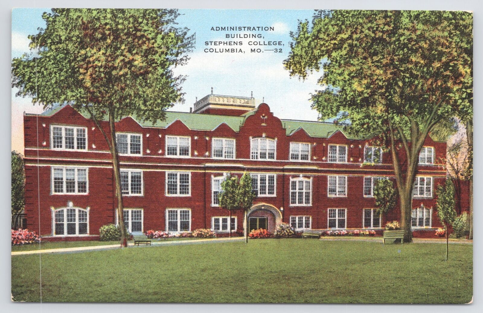Linen~Administration Bldg~Stephens College~Columbia MO~Courtyard & Trees~Vintage