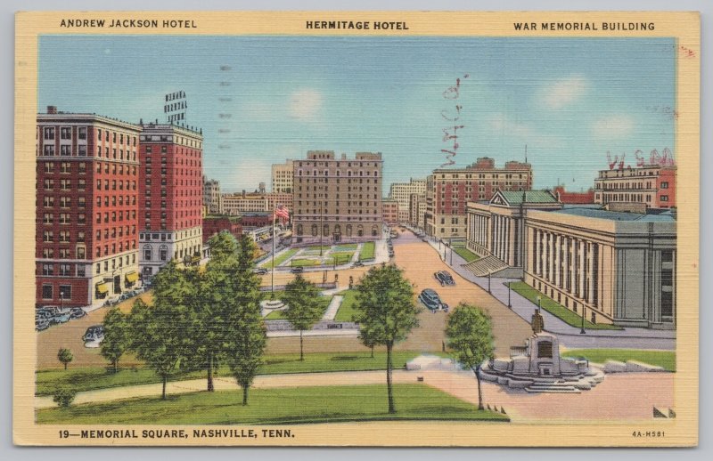 Linen~Hotels Andrew Jackson & Hermitage~War Memorial Bldg~Memorial Square~1947