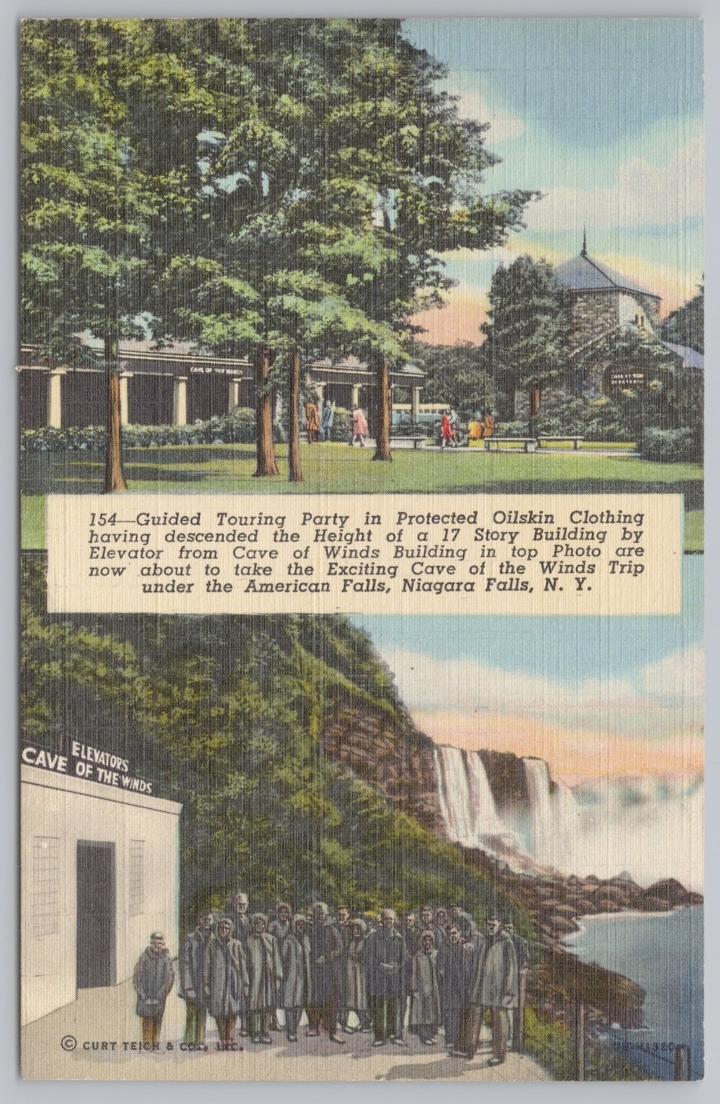 Linen~Niagara Falls NY~Touring Party In Oilskin~Trip Under American Falls~Vtg PC