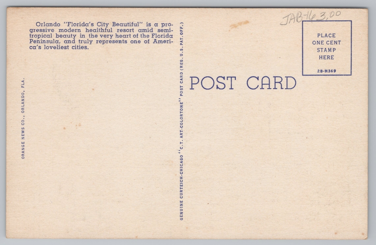 Condition: Vintage Postcard listed as "used" because of age. It may or may not be postally used. We provide ... Read more about the seller notes Vintage Postcard listed as "used" because of age. It may or may not be postally used. We provide scans that show all edges and corners. See photos, front and back, for condition. Read Less about the seller notes