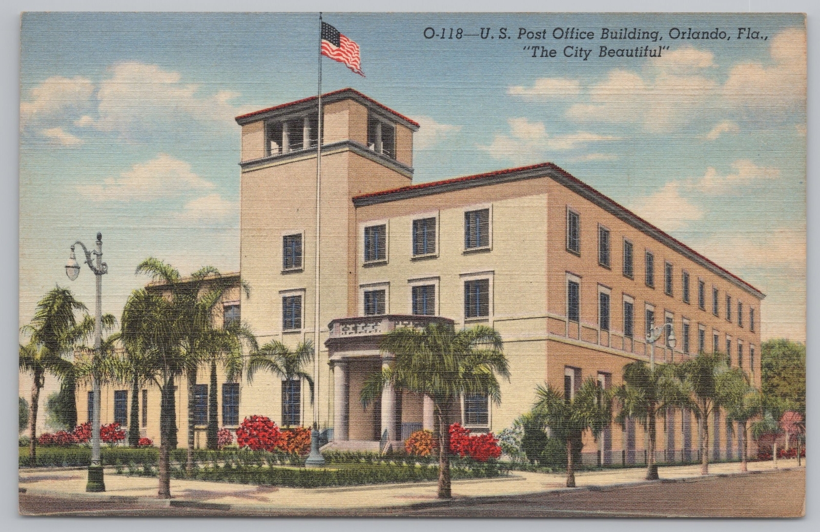 Linen~US Post Office Building Front View~Orlando Florida~Vintage Postcard
